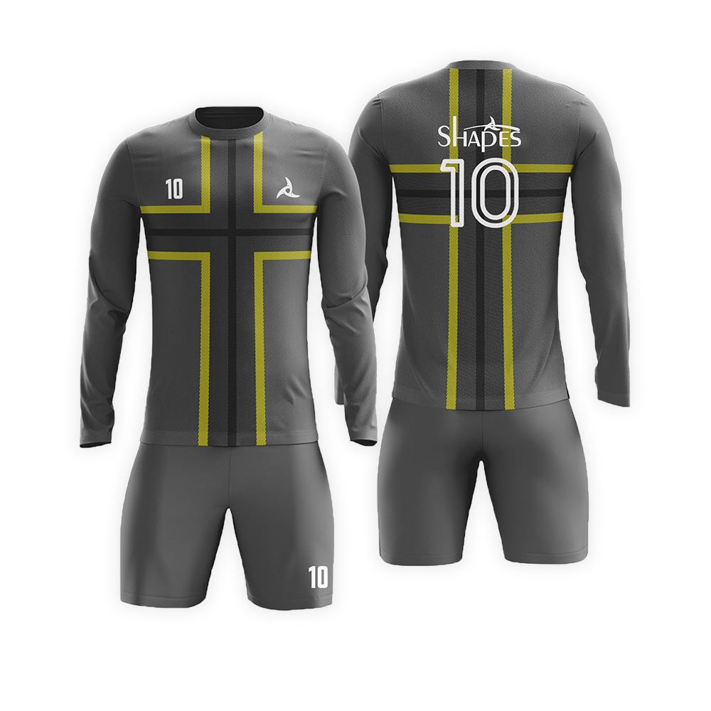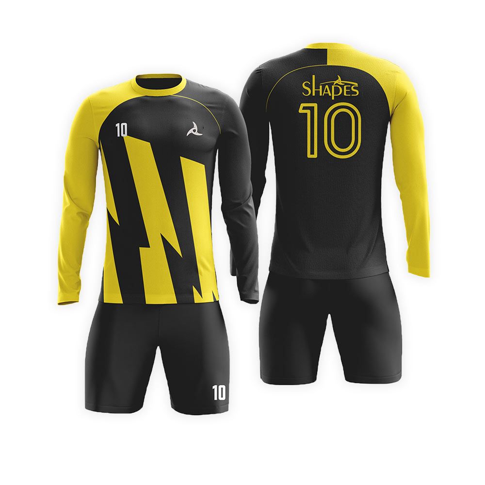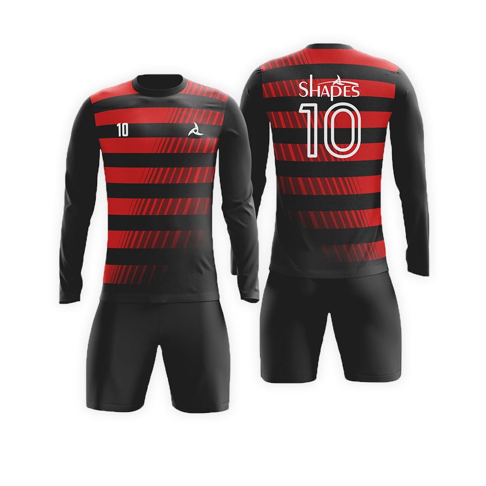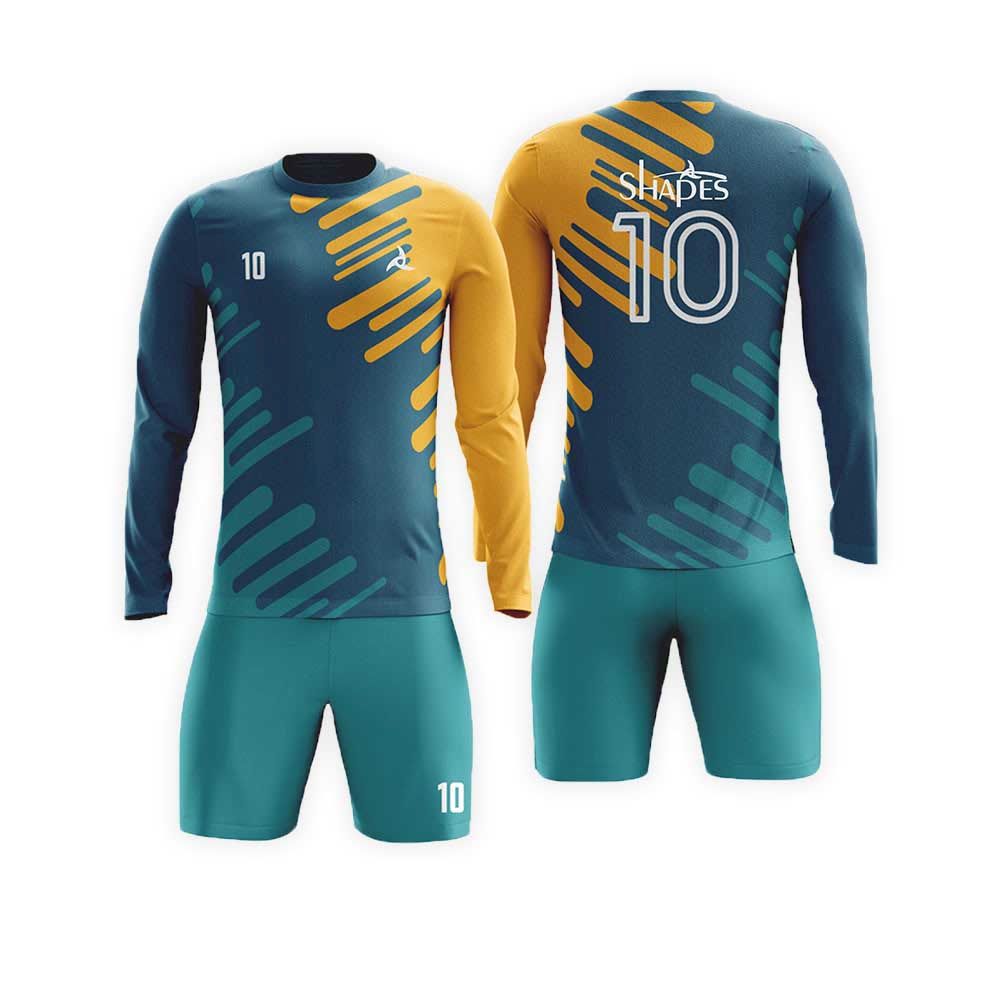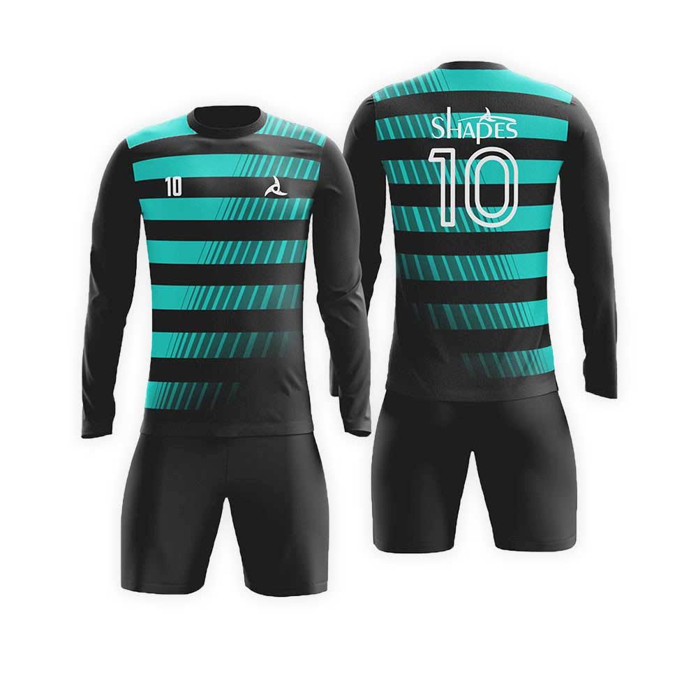 Custom Long Sleeve Soccer Uniforms: Soccer uniforms are a great way to represent your team or to show support to your club, team and etc. They have a massive impact and can help make your team look, feel and play well. Our custom soccer uniforms are made of high-quality fabrics that not only look amazing but also gives you that warm and snugly feel and makes you all comfortable. Each Soccer uniform is Constructed with care using only the best materials. Our state-of-the-art full color dye sublimation process then makes your dreams come to life. We guarantee you that each of our articles will be perfect in every way. Our custom Soccer uniform team won’t let you down.