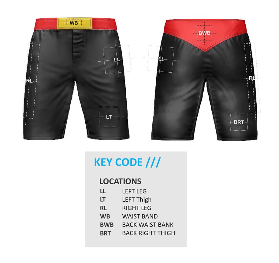 - Include a detailed description in special notes if you have any, regarding placement of logos or text, Upload all logo/artwork files in vector format or send to sales@shapesfightwear.com Accepted files types include PDF, AI, SVG or EPS.