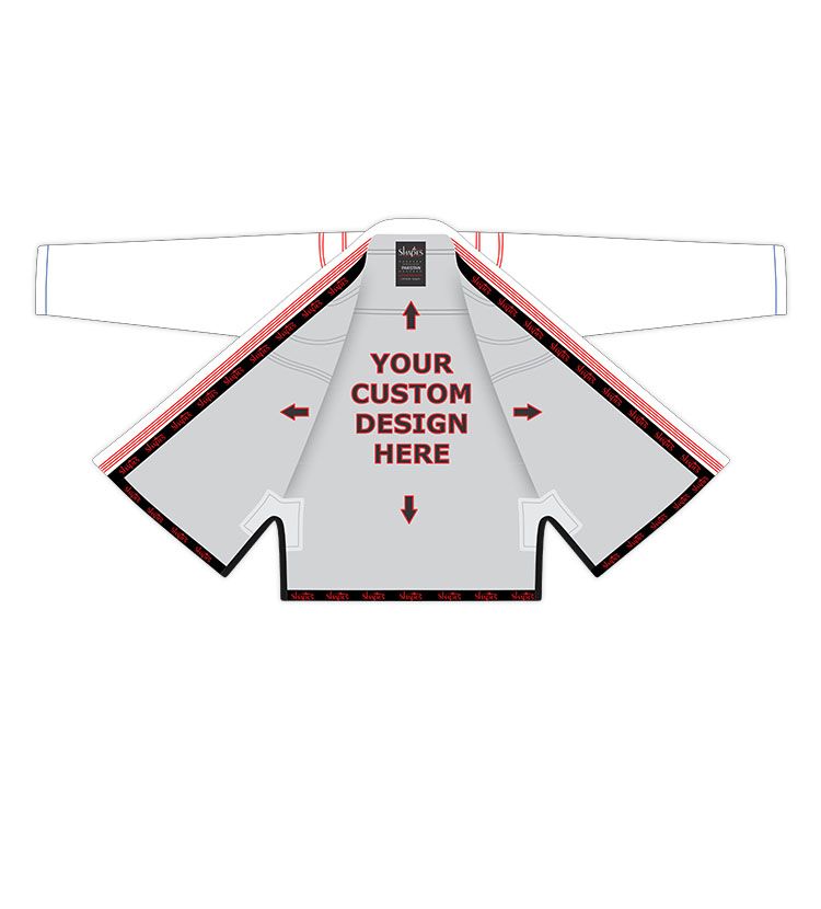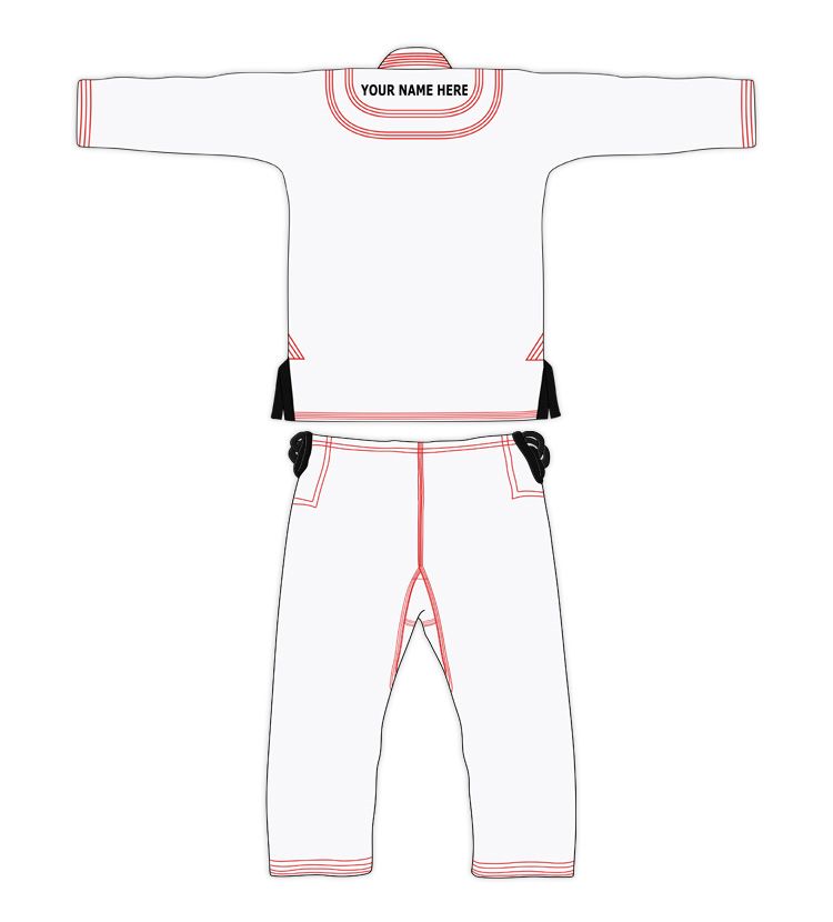 This Personalized White with Red & Black Combination Brazilian Jiu-Jitsu Gi lets you design the perfect BJJ Gi to match your style and preferences. This also includes the Free Custom BJJ Belt & Free Drawstring Gi satin Bag.