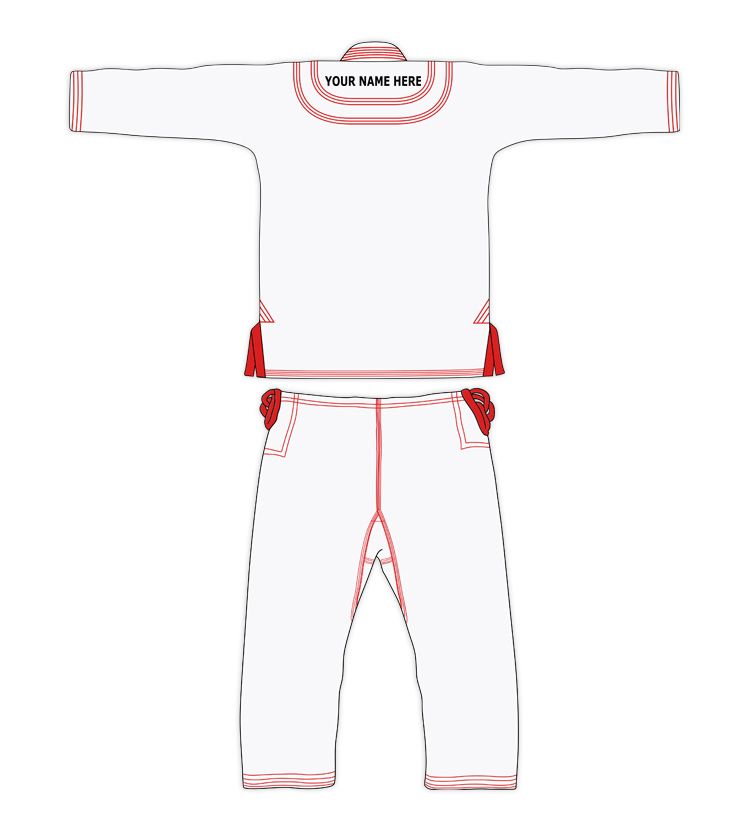 This Personalized White with Red Stitching Gi includes all options; let you design the best BJJ Gi. This also includes the Free Custom BJJ Belt & Free Drawstring Gi satin Bag.